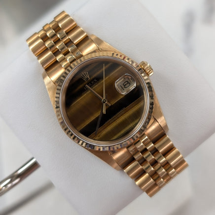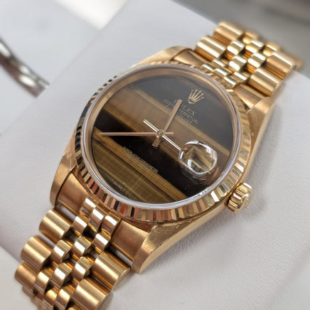 Model: DateJust, Tigers Eye Dial, 18k Yellow Gold on Jubilee (Ref. 16018)